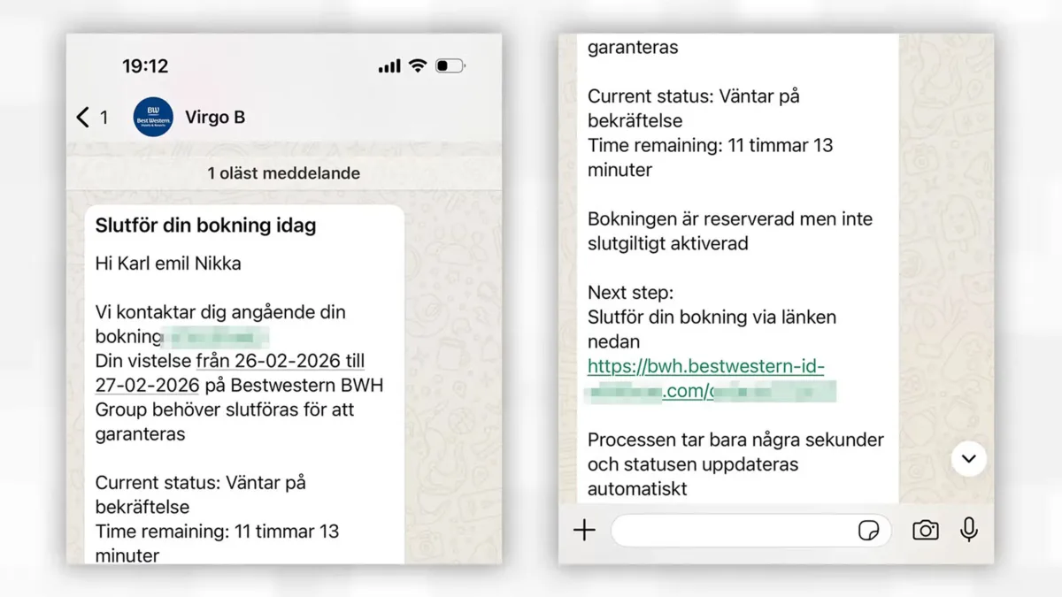 Bedrägeriförsöken mot hotellkedjan Best Western beskrivs som ovanligt detaljrika eftersom angriparna har tillgång till äkta bokningsdata. Genom att använda mottagarens riktiga namn, korrekta datum för kommande vistelser och det exakta beloppet för bokningen, skapas en hög grad av trovärdighet, meddelar Säkerhetskollen.